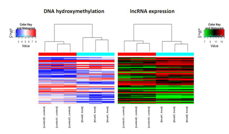 图2. DNA羟甲基化测序与LncRNA 表达谱联合分析聚类图