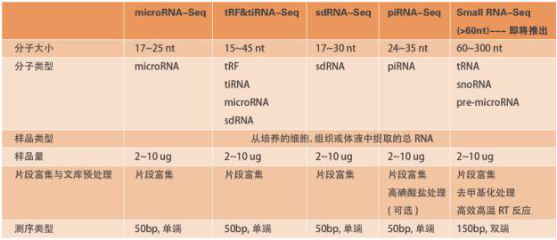 小RNA是一类长度小于200nt、不具蛋白编码能力的RNA分子,主要包含microRNA、tRF&tiRNA、piRNA、tRNA、snoRNA以及pre-microRNA等种类。作为重要的调控分子,小RNA在基因表达、表观遗传、疾病发生开展进程中发挥着重要功能。此外,高丰度、高稳定性和高特异性预示其在临床分子标志物(biomarker)研究中具有高潜在价值。