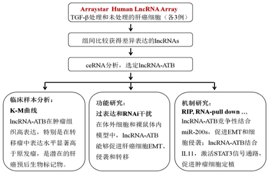第二军医大学孙树汉教授课题组长期致力于肝癌的研究。其课题组使用Arraystar LncRNA芯片研究肝癌,取得了丰硕成果,已陆续在发表六篇文章,文章先后刊发于Hepatology, Molecular Cell等顶级国际期刊。近期,其课题组应用Arraystar LncRNA芯片发现了能促进肝癌肿瘤侵袭和转移的新lncRNA分子——lncRNA-ATB,该研究成果刊登在国际顶级杂志Cancer Cell(影响因子24.755)(LncRNA芯片均由hjc黄金城给予技术服务)。