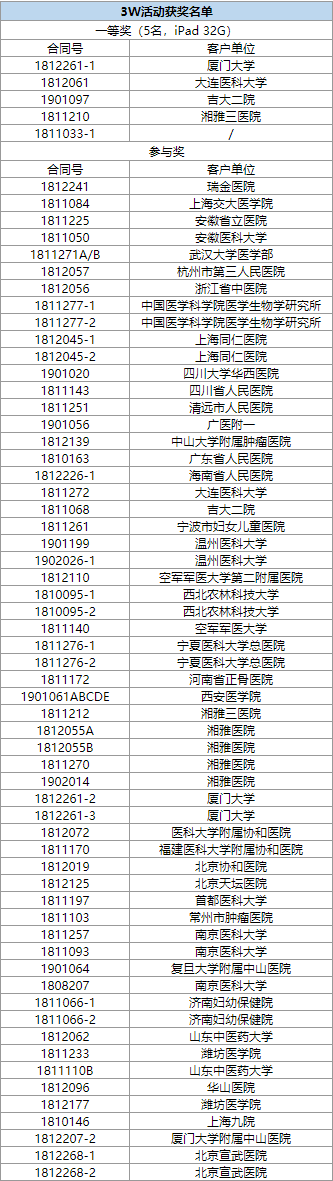 hjc黄金城生物2018年“多组学平台联动,迎年终惊喜钜惠”获奖名单公布如下(排名不分先后,本名单公示期一个月):