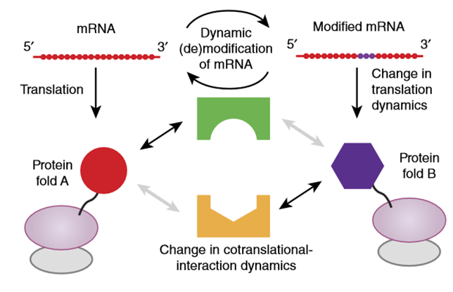 图2. 翻译延伸动态的改变影响共翻译新生蛋白的折叠或与其它陪伴蛋白的相互作用[8]。