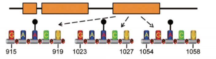 [2] Meyer, K. D., et al. (2012) "Comprehensive analysis of mRNA methylation reveals enrichment in 3' UTRs and near stop codons" Cell 149(7):1635-46 [PMID: 22608085]