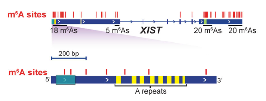[16] Patil, D. P., et al. (2016) "m(6)A RNA methylation promotes XIST-mediated transcriptional repression" Nature 537(7620):369-373 [PMID: 27602518]