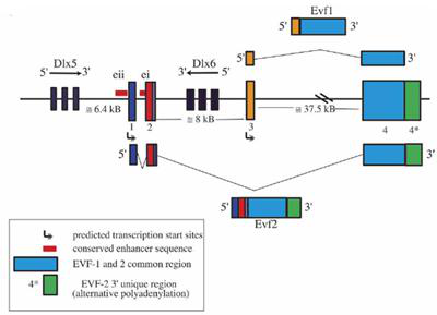 2. Feng J et al: The Evf-2 noncoding RNA is transcribed from the Dlx-5/6 ultraconserved region and functions as a Dlx-2 transcriptional coactivator. Genes Dev 2006, 20(11):1470-1484.[PMID: 16705037]