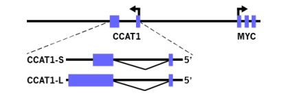 图释: MYC上游超级增强子区域转录产生CCAT1-L与CCAT1-S。