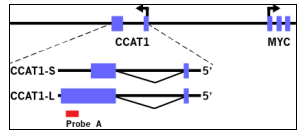 图释:Arraystar SE-LncRNA芯片探针A(Probe A)可特异性的检测isoform CCAT1-L。