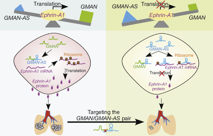 Long Noncoding RNA GMAN, Up-regulated in Gastric Cancer Tissues, Is Associated With Metastasis in Patients and Promotes Translation of Ephrin A1 by Competitively Binding GMAN-AS.