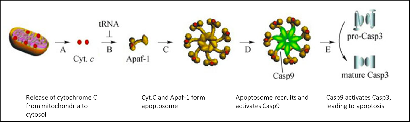 图5. tRNA结合细胞色素C,抑制凋亡复合体形成,进而抑制细胞凋亡[9,10]。
