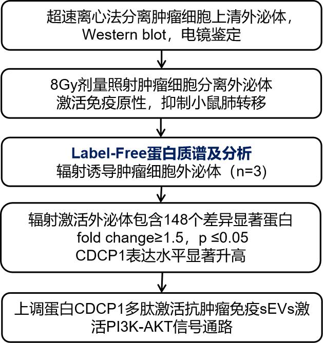 放射治疗(Radiotherapy,RT)是现在癌症治疗的重要策略。越来越多的证据表明放疗在抗肿瘤免疫诱导中的作用。小胞外囊泡(Small extracellular vesicles ,sEVs)是在内小体网络中的囊泡体中形成的纳米囊泡(直径50-200nm),几乎所有类型的细胞都可以释放,包括癌细胞。 来源于供体细胞的sEVs顺利获得交换其内容物(包括蛋白质、脂类和功能性遗传物质等)在局部及系统的细胞通讯中发挥着重要作用。肿瘤来源的sEVs作为天然肿瘤相关抗原(TAAS)的载体,可以有效的转移到树突状细胞(DCs)并诱导抗原特异性CD8+ T细胞活化。然而,辐射诱导的潜在机制、免疫系统的激活仍有待充分阐明。