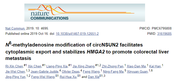 circNSUN2上调可促进小最结直肠癌的肝转移;