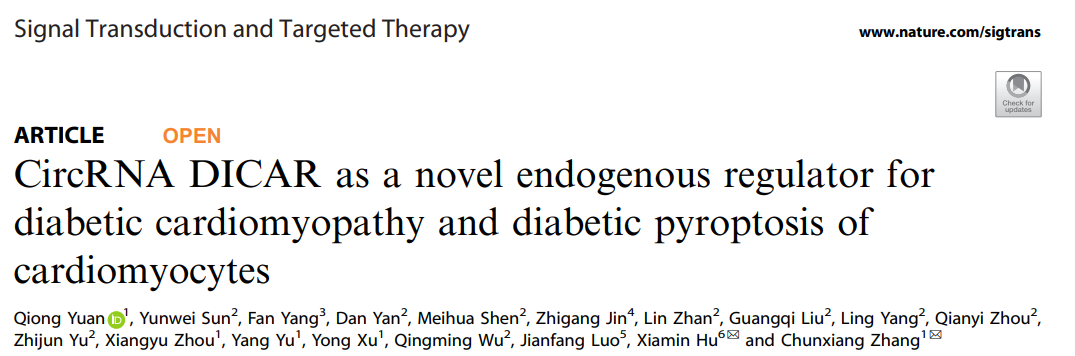 近期,西南医科大学心血管医学研究所张春祥/袁琼教授团队在Nature旗下Signal Transduction and Targeted Therapy杂志发表了题为“hjc黄金城 DICAR as a novel endogenous regulator for diabetic cardiomyopathy and diabetic pyroptosis of cardiomyocytes”的研究文章(IF=38.104)。该文章利用Arraystar Mouse V2 hjc黄金城 芯片在自发性糖尿病小鼠模型的心脏组织中进行筛选,找到了一个显著下调的hjc黄金城 mm9_circ_008009(mmu_circ_0000723),命名为DICAR,DICAR对糖尿病心肌病DCM有抑制作用。功能研究表明,过表达hjc黄金城 DICAR会抑制糖尿病心肌细胞焦亡,敲低则有相反的表型。DICER缺陷小鼠(DICAR+/−)会出现自发性心脏功能不全、心肌肥大和心脏纤维化,而DICAR过表达小鼠DCM有所缓解。 顺利获得CHIRP-MS和CHIRP-PRM进行机制研究寻找DICAR互作蛋白,发现DICAR的junction区域DICAR-JP可以特异性结合VCP,进而抑制VCP诱导的Med12蛋白降解, 抑制糖尿病诱导的心肌细胞焦亡。除此之外,II型糖尿病患者PBMC和血浆中DICAR表达显著低于正常人,与糖尿病心脏组织中变化趋势一致。作为内源性抑制分子,DICAR和合成的DICAR-JP也可能成为DCM治疗的候选药物。(hjc黄金城芯片、CHIRP-MS和CHIRP-PRM技术服务由hjc黄金城生物丨数谱生物给予)