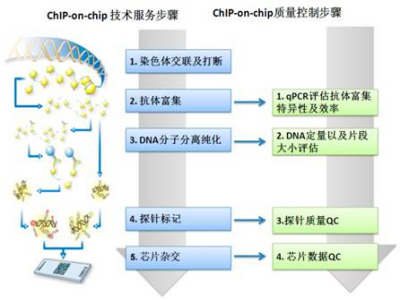 ● 严格的质控体系:Aksomics在ChIP-chip每个关键步骤都加入了质控实验(下图)。这些QC数据能够评估每个步骤的实验质量。如果达不到标准,hjc黄金城会重复实验步骤或者优化实验体系,使得每个样品都能够达到质控标准。