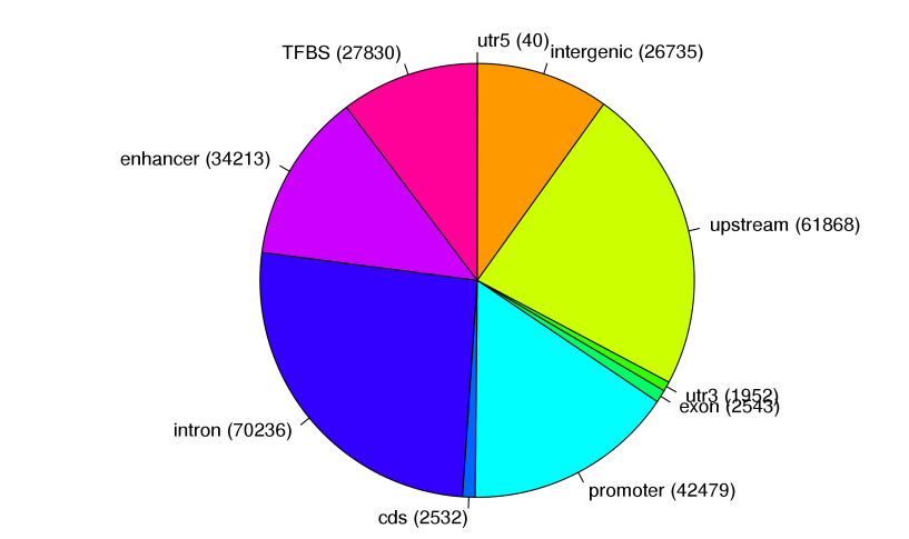 我司使用MACS2进行peak识别,并根据Ensembl数据库和Ehancer数据库(EnhancerAtlas)的注释信息,对peak进行详细注释。