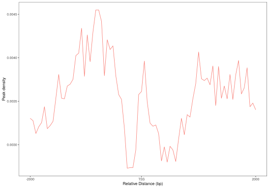 对peaks和fragments在TSS(转录起始位点)及转录本周围的分布情况进行统计并绘图。