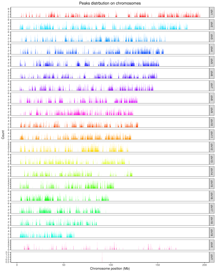 Figure5. 不同修饰水平peaks在染色体上的分布