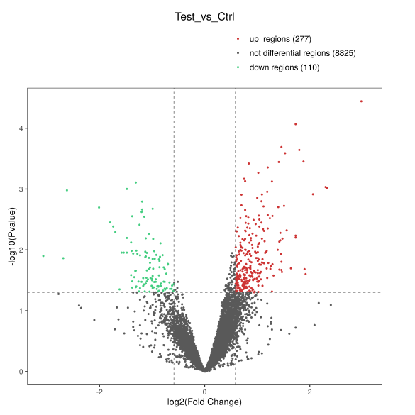 顺利获得各样本在差异peak富集程度的系统聚类分析,可以分析各组样本间的关系。火山图顺利获得-log10P_value和log2Fold_Change两个条件,对比较数据进行筛选,可以直观地展示两组数据之间富集差异的倍数变化及显著性的关系。