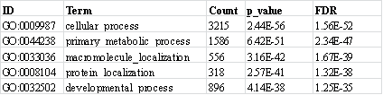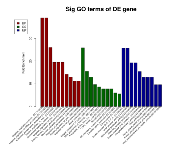 GeneOntology (GO)是一种基因功能分类条目,有三个子条目,分别描述每个基因的分子功能(MF: Molecular function)、细胞组成(CC: Cellular component)、参与的生物学过程(BP: Biological process)。通常的GO富集分析就是利用统计学算法来找出一组差异表达基因和哪些具体功能条目联系最大,每个GO条目都对应一个统计值P-value来表示显著性,P-value越小表示该GO条目和输入的差异表达基因联系越大,即该组差异表达基因大部分具有该GO条目对应的描述功能。