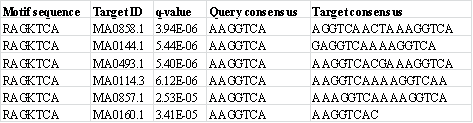 在遗传学中,motif是指一段短的且普遍存在的核苷酸或氨基酸序列。被认为有特定的生物学意义,比如DNA上的蛋白结合位点。当motif出现在基因外显子区域时,其对蛋白结构具有重要作用。我司使用MEME-ChIP(v4.9.1)中的DREME方法(适合于查找短的motif)来检测motif。将得到的motif与转录因子结合位点motif数据库(JASPARCORE2018)内的motif进行比较,从而得到相关motif的更多信息。