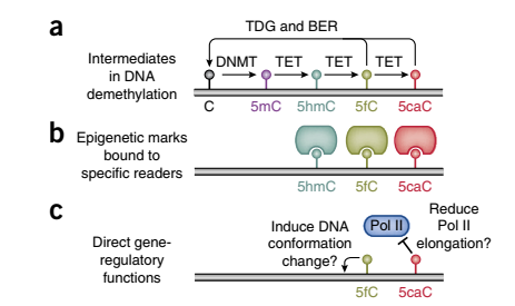 Figure 1:DNA去甲基化过程及各中间产物的功能