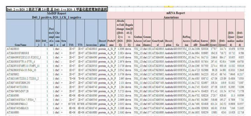 *图释:上图展示了甲基化芯片结果D40 vs D20甲基化程度增加且表达谱芯片结果D40 vs D20表达下调2.0倍的基因