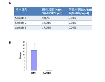 *图释:MeDIP-qPCR质控。MeDIP特异地富集甲基化的DNA区域(H19启动子区),而非甲基化区域(GAPDH启动子区)几乎无富集。