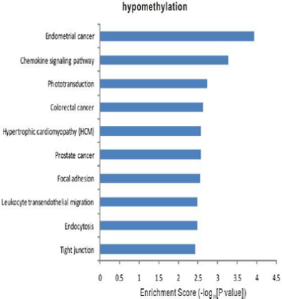 单核细胞白血病DNA甲基化模式的改变,引起癌症相关信号通路的变化(Exome sequencing identifies somatic mutations of DNA methyltransferase gene DNMT3A in acute monocytic leukemia. Nat Genet,2011,IF:36.377)