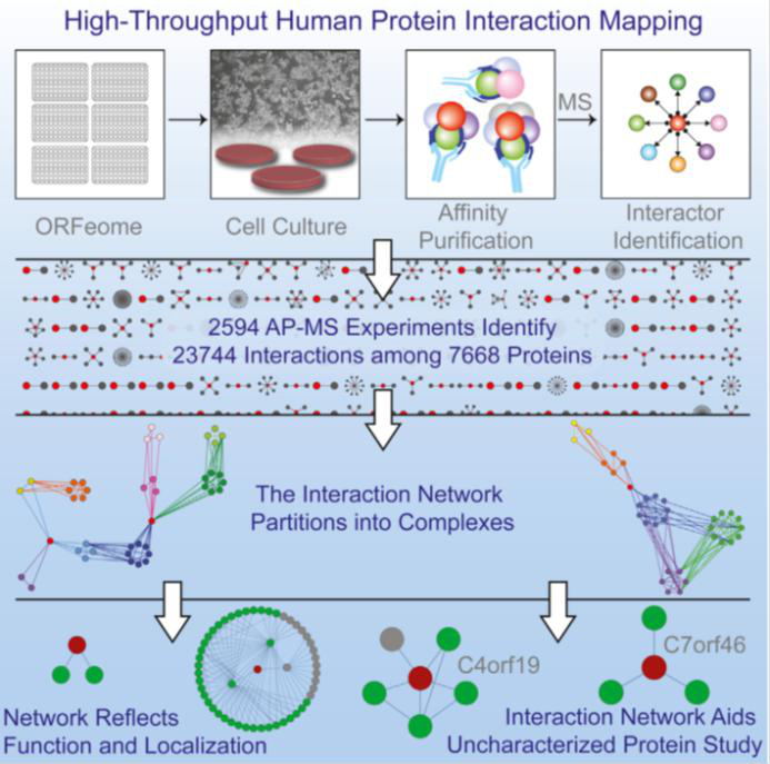 1. 哈佛大学Steven P. Gygi教授实验室运用高通量AP-MS技术,进行了2594组AP-MS实验,鉴定了23744个相互作用,包括了7668个蛋白质,为研究蛋白尤其是功能未知蛋白给予了重要参考意义。
