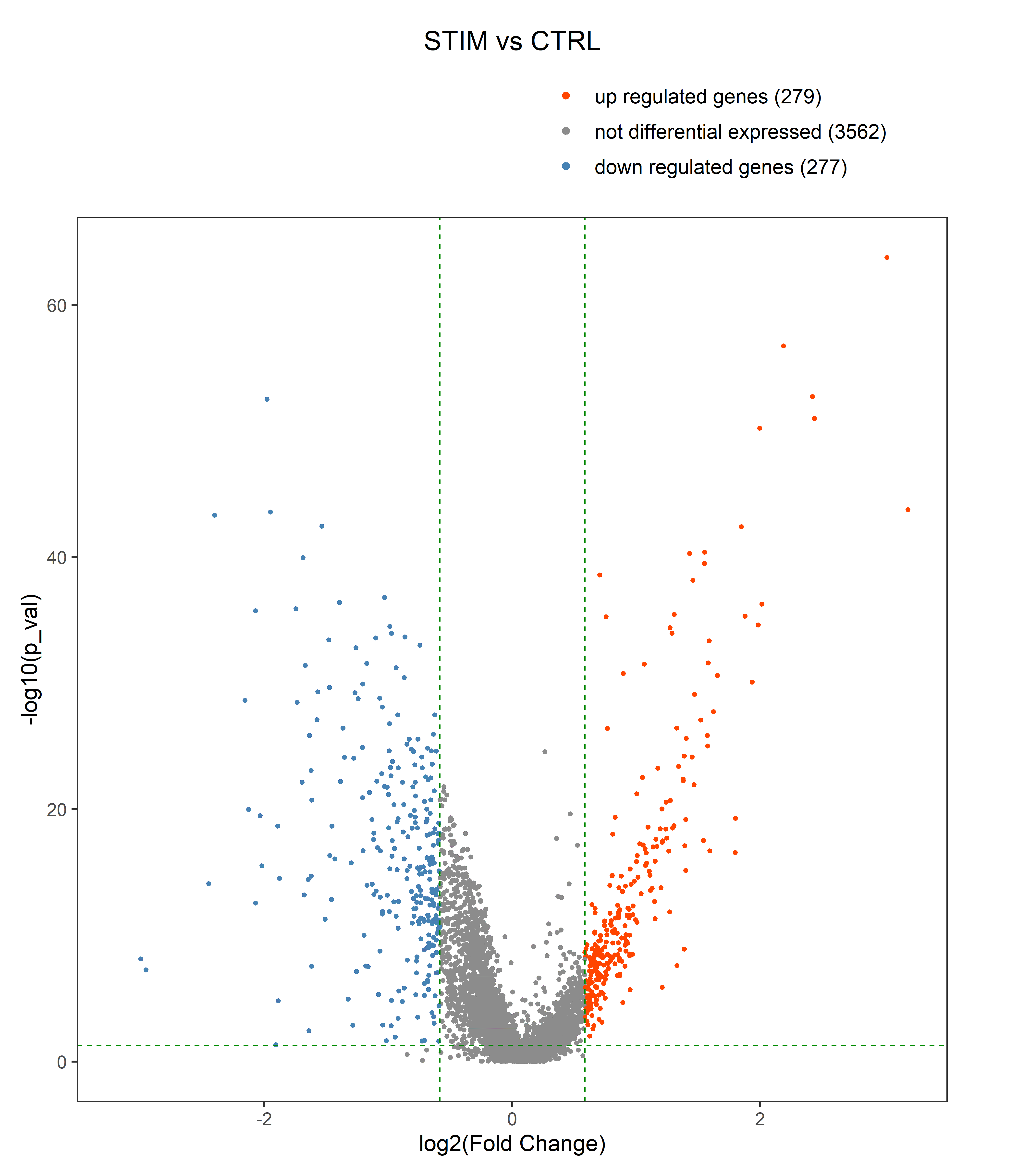 对各细胞类型筛选得到的差异表达基因进行火山图展示,下图为肿瘤细胞类群单独进行差异表达分析的火山图,从而可以针对肿瘤细胞的差异基因进行功能分析。