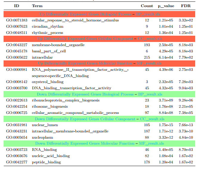 差异表达基因的 GO 富集分析结果(Top 3)