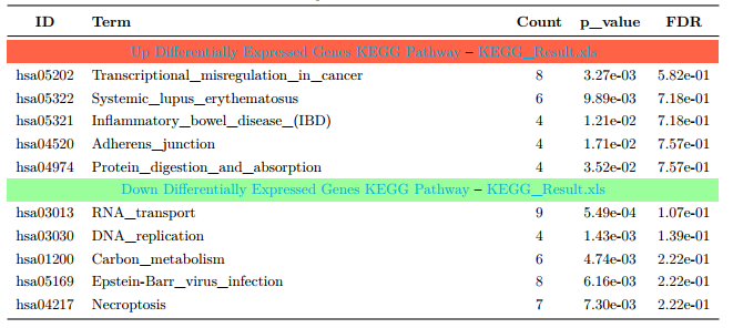 前 5 个差异表达显著基因的 Pathway 结果