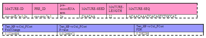根据标准化后的microRNA表达值(TPM),hjc黄金城会计算出每个microRNA在不同样品间(如处理组 vs 对照组)的表达变化(fold change),并顺利获得ttest计算样品间microRNA表达量变化的统计学显著性。那些表达变化倍数在1.5倍以上,p值小于0.05的microRNA被挑选出来,并定义为显著性差异表达的microRNA。针对多重比较,p值被校正为FDR。客户可以根据倍数变化,p值,FDR等参数对差异表达的microRNA进行排序和筛选。