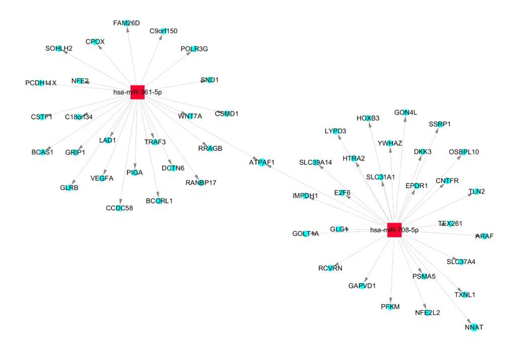 它们顺利获得诱导mRNA降解或转录抑制在基因表达调控中起着一种重要的作用。每个microRNA顺利获得部分序列互补的方式结合到基因的3'UTR,平均靶向几百个基因。Aksomics microRNA靶基因预测可以分析top10差异miRNA(上下调各10个)的潜在靶基因,并构建microRNA-靶基因调控网络,以推断这些microRNA的功能。