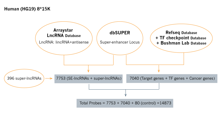 | Human SE-lncRNA 芯片服务 | Arraystar Human SE-lncRNA Microarray | 8 * 15K | SE-lncRNAs (7753)+ mRNAs (7040) |