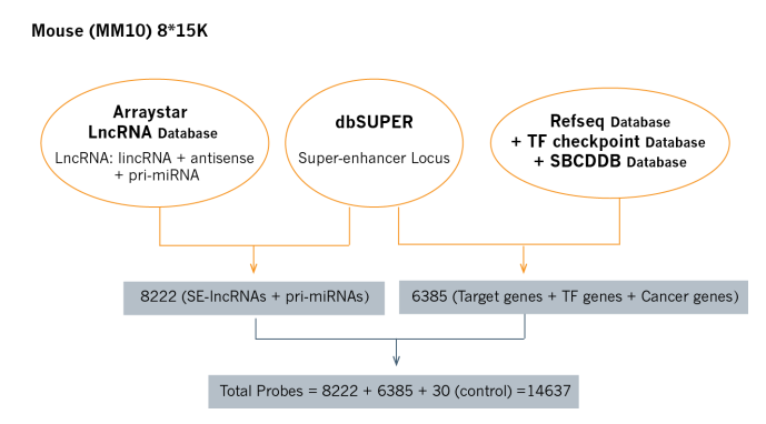 Arraystar Mouse SE-lncRNA Microarray | 8 * 15K | SE-lncRNAs (8222) + mRNAs (6385) |