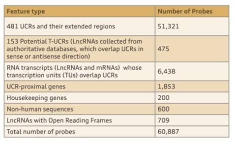Arraystar 人T-UCR芯片参数:
