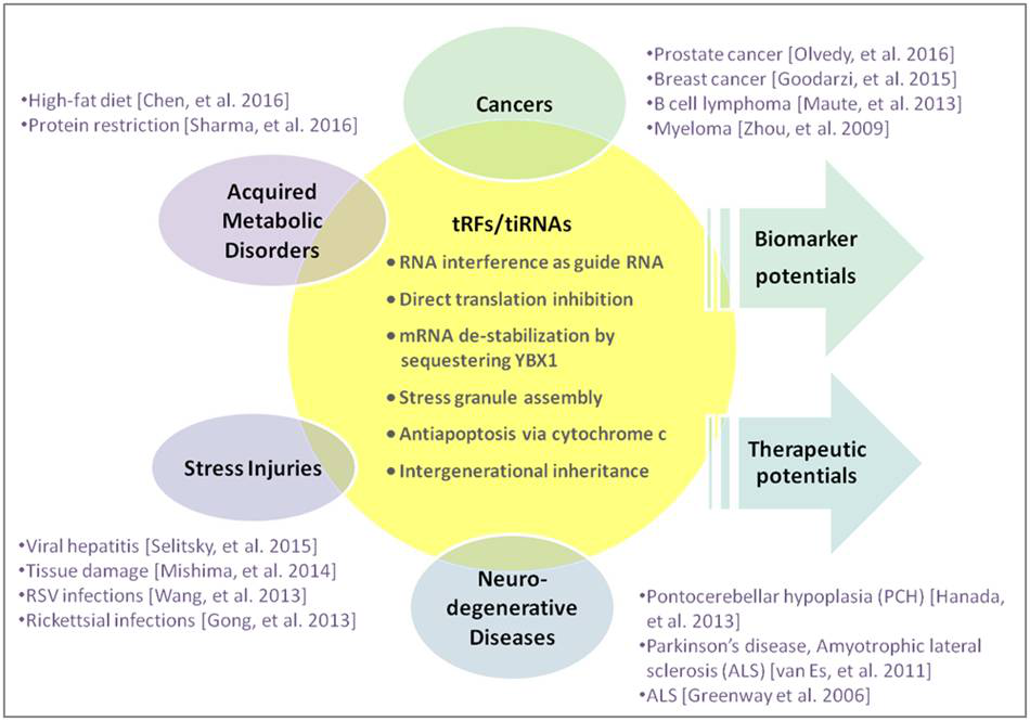 tRF&tiRNA:为什么以及如何研究它们? 【客户首篇tRF文章】tRF作为曲妥单抗耐药型乳腺癌的Biomarker Nature发文揭示线粒体tRF&tiRNA在跨代表观遗传中的作用tRFs和tiRNAs是tRNA及其前体顺利获得精确调控的加工过程产生的,作为小非编码RNA行使多种生理功能,与诸多生理病理过程相关(图1)。据报道,tRFs&tiRNAs能够以microRNA的方式参与RNA干扰;结合蛋白因子并调节目标mRNA的稳定性;与细胞色素C互作,调控细胞凋亡;改变胚胎转录级联调控,作为父本表观遗传因子介导代谢疾病遗传;多种应激条件下促进应激颗粒的组装。