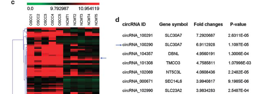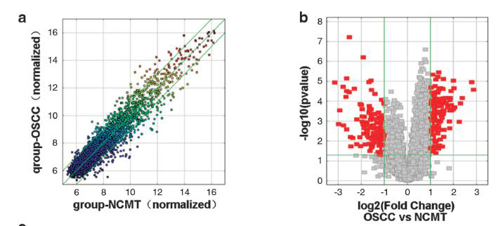 为了探究hjc黄金城在OSCC发生和开展的作用,本文使用Arraystar hjc黄金城芯片,分析OSCC及NCMT样本,分析hjc黄金城表达谱,发现共有280个hjc黄金城表达发生显著表达,其中139个hjc黄金城上调,141个hjc黄金城下调,从上调最显著的10个hjc黄金城中选出hjc黄金城_100290, q-PCR验证hjc黄金城_100290确实在OSCC组织中表达显著上调。