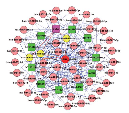 图2:ceRNA分析揭示hjc黄金城_100290顺利获得CeRNA机制调控CDK6