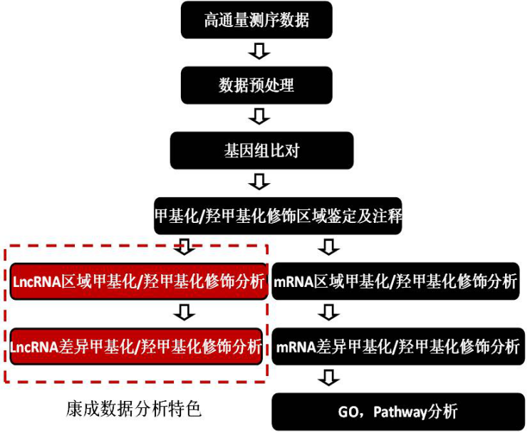 图1. 甲基化/羟甲基化测序lncRNA启动子分析流程