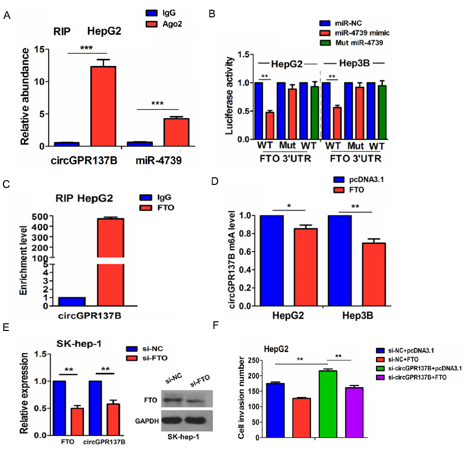 C:RIP实验表明,FTO蛋白能够直接与CircGPR137B结合。