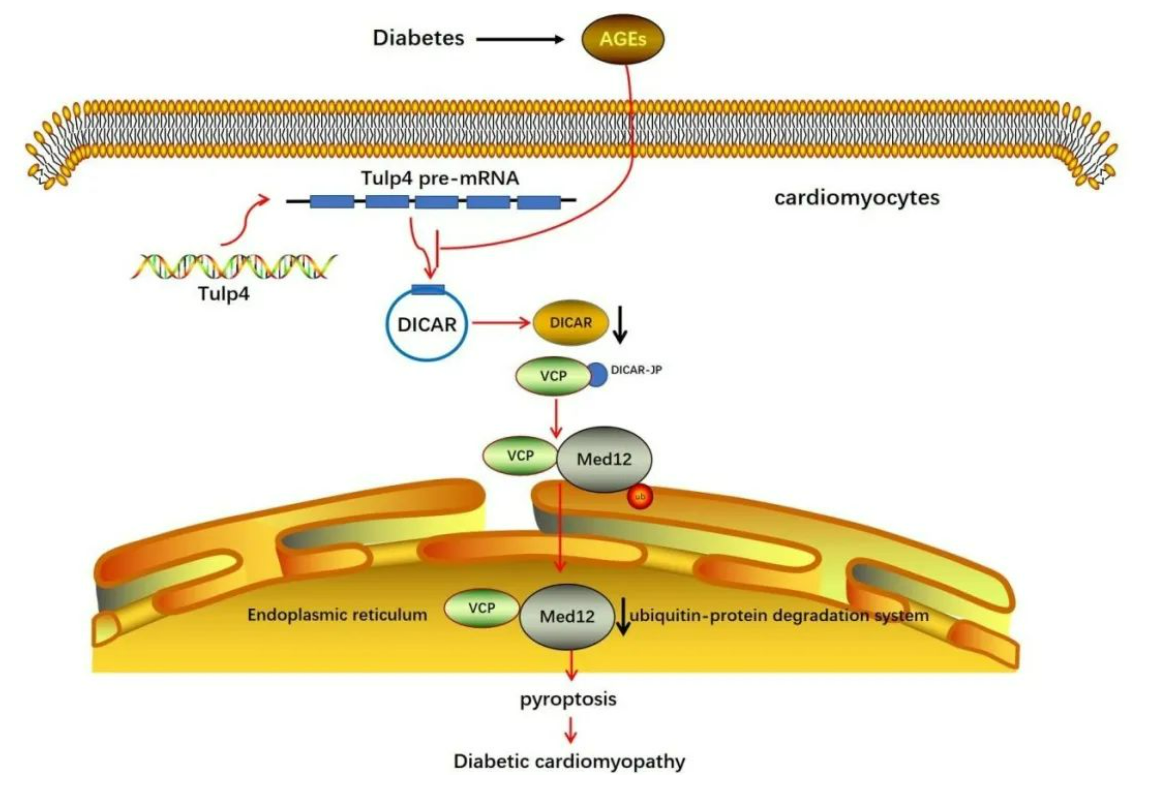 近期,西南医科大学心血管医学研究所张春祥/袁琼教授团队在Nature旗下Signal Transduction and Targeted Therapy杂志发表了题为“hjc黄金城 DICAR as a novel endogenous regulator for diabetic cardiomyopathy and diabetic pyroptosis of cardiomyocytes”的研究文章(IF=38.104)。该文章利用Arraystar Mouse V2 hjc黄金城 芯片在自发性糖尿病小鼠模型的心脏组织中进行筛选,找到了一个显著下调的hjc黄金城 mm9_circ_008009(mmu_circ_0000723),命名为DICAR,DICAR对糖尿病心肌病DCM有抑制作用。功能研究表明,过表达hjc黄金城 DICAR会抑制糖尿病心肌细胞焦亡,敲低则有相反的表型。DICER缺陷小鼠(DICAR+/−)会出现自发性心脏功能不全、心肌肥大和心脏纤维化,而DICAR过表达小鼠DCM有所缓解。 顺利获得CHIRP-MS和CHIRP-PRM进行机制研究寻找DICAR互作蛋白,发现DICAR的junction区域DICAR-JP可以特异性结合VCP,进而抑制VCP诱导的Med12蛋白降解, 抑制糖尿病诱导的心肌细胞焦亡。除此之外,II型糖尿病患者PBMC和血浆中DICAR表达显著低于正常人,与糖尿病心脏组织中变化趋势一致。作为内源性抑制分子,DICAR和合成的DICAR-JP也可能成为DCM治疗的候选药物。(hjc黄金城芯片、CHIRP-MS和CHIRP-PRM技术服务由hjc黄金城生物丨数谱生物给予)