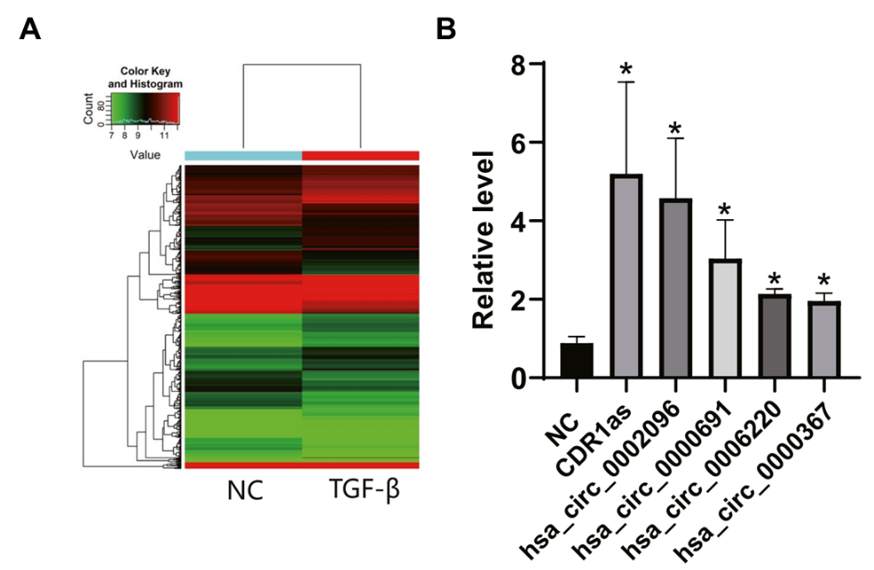 图1:CDR1as在TGF-β过表达的宫颈癌细胞显著上调。