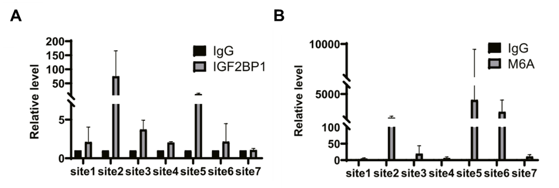 B MeRIP-PCR验证SLUG mRNA在IGF2BP1结合位点有m6A修饰。