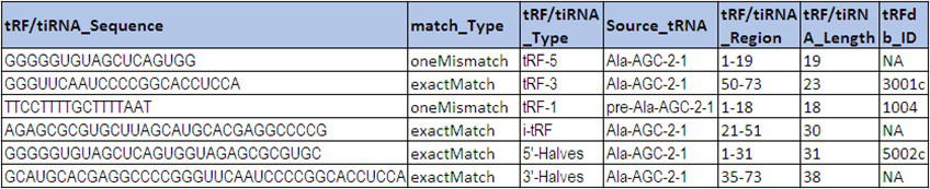 •全面的tRFs&tiRNAs数据库信息