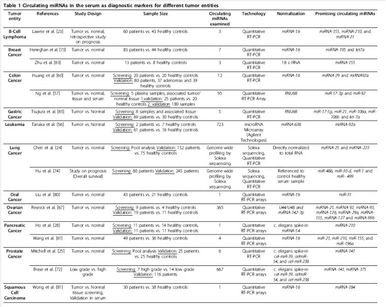 184个血清Oncomir