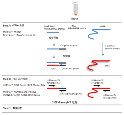 *图释:miRStar™癌症特异性microRNA & 靶基因PCR芯片工作流程。