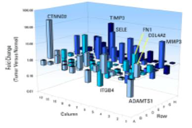 Arraystar公司开创性的设计了miRStar™microRNA PCR芯片系统,可以同时检测癌症相关的microRNA和它们的靶基因。它不仅能够快速检测样品中癌症相关的microRNA的表达变化,还可以评估这些microRNA对靶标mRNA的调控活性,从而帮助研究者筛选到疾病中最为核心的功能microRNA分子,并迅速分析其调控机制和功能。